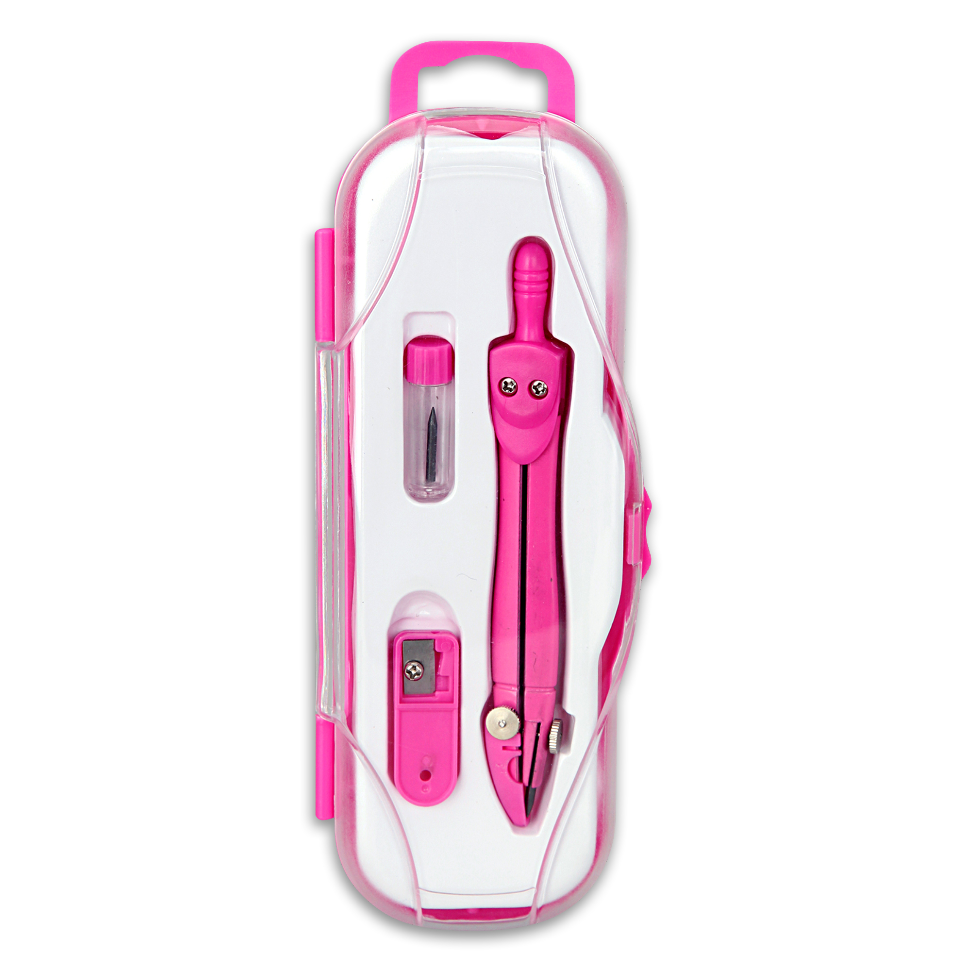 Metalowy cyrkiel z grafitem 2mm. W komplecie pojemnik na zapasowe grafity oraz mini temperówka do grafitów. Całość w kolorowym etui z zawieszką. x