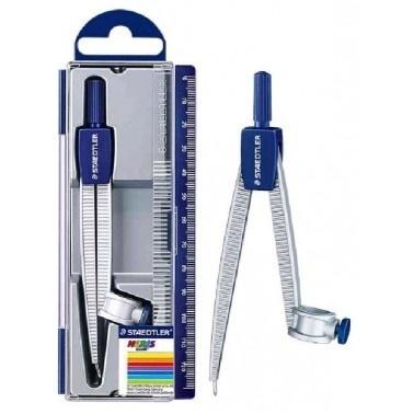 Cyrkiel szkolny z uniwersalnym adapterem do pisaków i ołówków. Maksymalna średnica okręgu ok 300mm. Długość cyrkla 124mm.