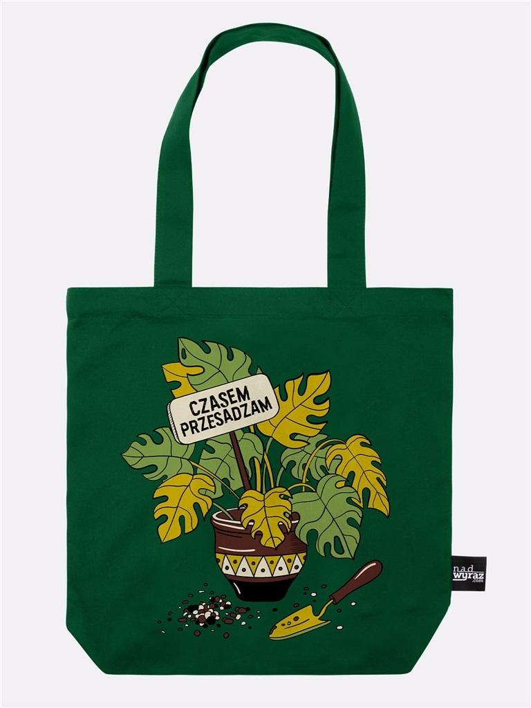 Torba CZASEM PRZESADZAM z motywem roślinnym to świetny prezent dla florysty, miłośnika roślin doniczkowych oraz króla dżungli.
