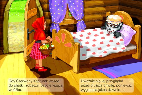 Proponowana adaptacja to skrócona wersja klasycznej baśni o Czerwonym Kapturku. Jest przyjazna, napisana współczesnym językiem, a jej akcja toczy się dynamicznie. Treść uzupełniają atrakcyjne ilustracje.