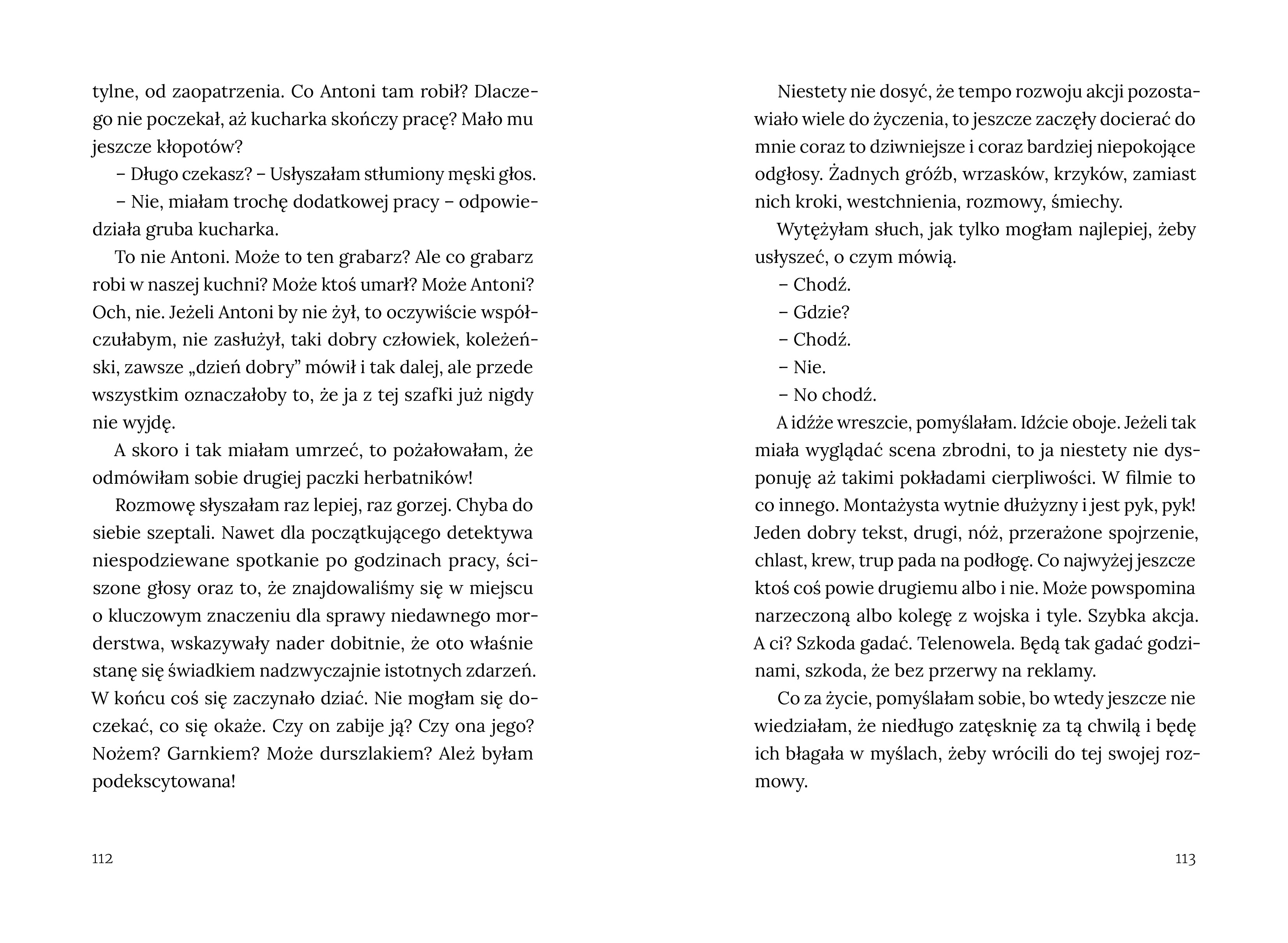 "Czwarte sikanie Bożenki Kowalskiej", jak już sugeruje sam tytuł, jest komedią kryminalną. Tego typu powieści traktowane są zarówno przez pisarza, jak i przez czytelników, z przymrużeniem oka. Nie chodzi tu bowiem o to, żeby morderstwo miało wzbudzić u odbiorcy strach czy zaintrygować go do tego stopnia, jak czynią to klasyczne kryminały. W przypadku komedii stawia się raczej na śmiech, a morderstwo występuje tylko "przy okazji". Sama intryga również nie powinna być zbyt skomplikowana. Powieść Jacka Galińskiego spełnia wszystkie wymienione warunki, więc jeśli lubicie komedie kryminalne, śmiało możecie po nią sięgać! W utworze przeplatają się dwie ścieżki narracyjne - wspomnianych już bohaterów, Sabiny i Antoniego. Łączy ich sprawa zagadkowej śmierci Kowalskiej, a może nawet coś więcej? Ich relacja pozostaje zabawna, opiera się na schemacie fantazjowania Antoniego i łatwowierności Sabiny, podsycanej przypadkowymi zdarzeniami, które akurat pokrywają się z teoriami pensjonariusza. Taka kolejność zdarzeń powtarza się w powieści wielokrotnie i za każdym razem generuje niechciane pomyłki, absurdalne okoliczności i śmieszne wypadki. Czy jest tutaj miejsce na ziarenko prawdy? Być może... Musicie przekonać się sami! Jedyny mankament, jaki rzucił mi się w oczy, to zaburzona dynamika akcji. Odniosłam wrażenie, że retardacja pojawia się za szybko. Utwór rozpoczyna mocne wydarzenie w postaci śmierci i podejrzenia morderstwa, a już kilka stron dalej wydaje się, że główna bohaterka o tym zapomina i zajmuje się czymś zupełnie innym. Niektóre sytuacje przedstawione na kartach powieści są na tyle absurdalne, że dużo tracą na autentyczności, przez co komizm również na tym cierpi. Powieść jednak ma otwarte zakończenie, a na ostatniej stronie widnieje informacja o planowanej kontynuacji losów Sabiny i Antoniego. Powstrzymam się zatem od ostrej krytyki i dam szansę drugiemu tomowi, na który, przyznam uczciwie, czekam z niecierpliwością. Jestem ciekawa, co autor przewidział dla swoich bohaterów, jak potoczą się ich losy i czy w kolejnej części możemy się spodziewać morderstwa. Ta ciekawość tego, co będzie dalej, niewątpliwie świadczy o tym, że "Czwarte sikanie Bożenki Kowalskiej" do pewnego stopnia mnie wciągnęło. Podsumowując, wystarczy nieco silniej niż zwykle przymknąć oko, by móc w pełni delektować się komedią kryminalną, która będzie świetnym wyborem na czas relaksu z maseczką na twarzy i kubkiem gorącej herbatki obok. ✖ Opinia niepotwierdzona zakupem