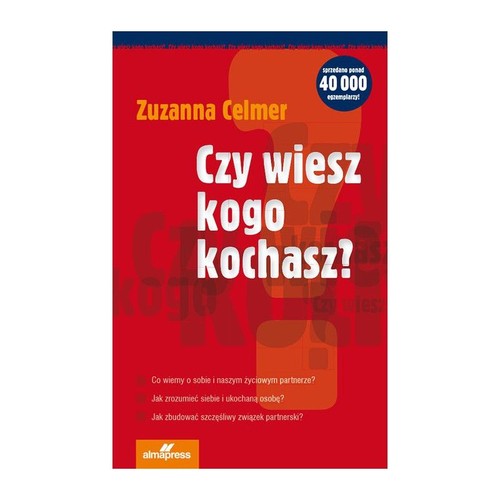 Co wiemy o sobie i naszym życiowym partnerzeJak zrozumieć siebie i ukochaną osobęJak zbudować szczęśliwy związek partnerskiNa te i inne pytania odpowiesz sobie po przeczytaniu książki Zuzanny Celmer, znanej psycholog, autorki wielu publikacji, audycji radiowych i telewizyjnych poświęconych problemom miłości, rodzicielstwa i małżeństwa.