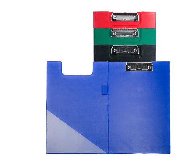 - sztywna podkładka wykonana z tektury pokryta folią PVC - mocny klip z mechanizmem sprężynowym - okładka zabezpieczajaca dokumenty - dodatkowy uchwyt na długopis i transparentna kieszeń na wewnętrznej stronie okładki - format A4 x