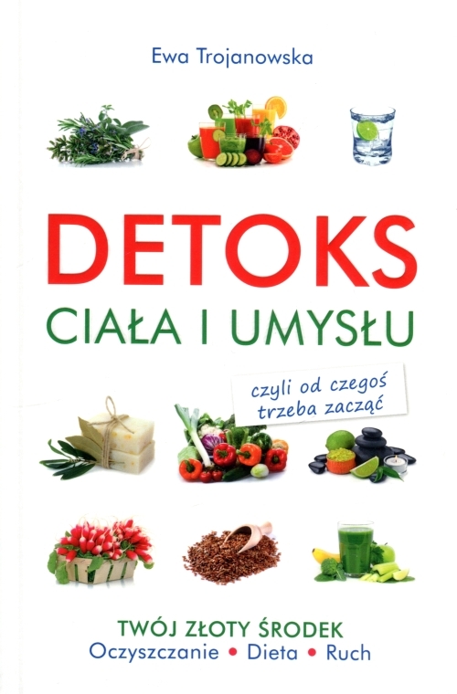 Opis produktuZasady bezpieczeństwaDetoks ciała i umysłu - Trojanowska EwaDetoks ciała i umysłu“ to historia Ewy Trojanowskiej o tym, jak można mieć młodzieńczą witalność, radość życia, sprawne, zdrowe, elastyczne i zadowolone ciało. Cieszyć się zdrowiem fizycznym i psychicznym oraz świetną kondycją bez względu na wiek. Jak dobrze funkcjonować w tak niezdrowych okolicznościach, które nam się przydarzają, a które często sami sobie stwarzamy.Ewa Trojanowska opowiadaZe szczerością i typowym dla siebie autohumorem Ewa Trojanowska opowiada o drodze, jaką pokonała od niezdrowego do zdrowego stylu życia. Ta książka nie tylko detoks umysłu i ciała, ale także duża dawka uśmiechu. Przestań się bać. Zatrzymaj się, zastanów, posłuchaj organizmu i ciała. Nie obwiniaj choroby, rodziców, tuszy, okoliczności. Nie jęcz. – Zrób coś. A wtedy kłody „rzucane“ często przez nas samych pod nogi, umocnią nas, sprawią, że zaczniemy myśleć holistycznie o sobie i o życiu w ogóle. I, że jeszcze bardziej rozwiniemy swoją kreatywność. [Ewa Trojanowska] Ewa Trojanowska - studiowała literaturę. Zawodowo zajmowała się projektowaniem i wystrojem wnętrz. Pasjonuje się sztuką, podróżami oraz dobrą kuchnią. Literacko zadebiutowała w 2012 roku książką „Sekrety Adama“, która ukazała się nakładem wydawnictwa G+J (obecnie Burda), a w 2014 roku „Kocham cię na zawsze“ (Burda).x