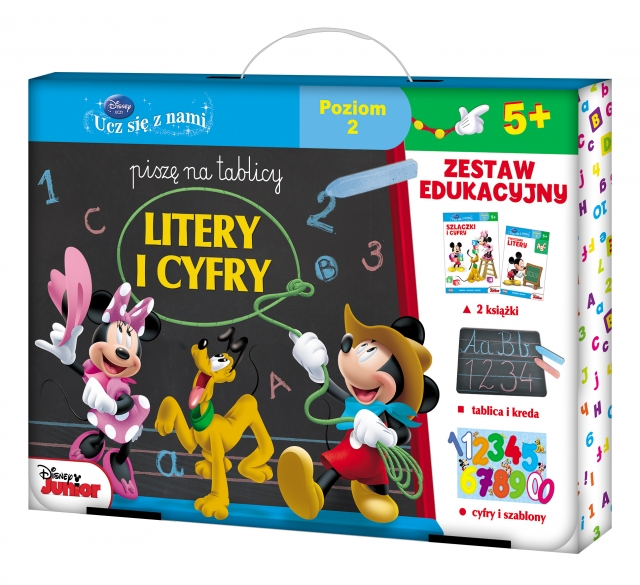 Zestaw edukacyjny przeznaczony dla dzieci rozpoczynających przygodę z pisaniem to okazja do nauki przez zabawę w towarzystwie ulubionych przez dzieci bohaterów ze świata Disneya. Dzięki kreatywnym narzędziom takim jak ścieralna tablica do pisania wraz z kredą, kartonowe szablony do rysowania kształtów i książki z naklejkami, Twoje dziecko w łatwy sposób nauczy się kreślić idealne linie, rozpoznawać kształty, rysować szlaczki i pisać litery oraz cyfry. Disney Ucz się z nami to program edukacyjny stworzony przez ekspertów, aby pomóc dzieciom w wieku przedszkolnym i wczesnoszkolnym rozwinąć kluczowe dla nich umiejętności.