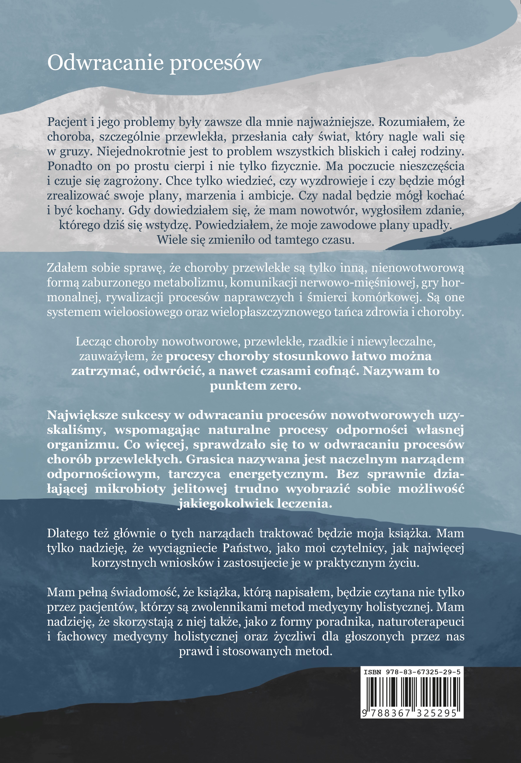 Najważniejsze akcenty stawiane są na zapomnianą i niedocenianą przez medycynę akademicką grasicę, która według autora rządzi procesami odpornościowymi, tarczycę, która zarządza energią organizmu oraz jelita, czy może bakterie jelitowe, które w zaburzonej formie, prowadzą do wielu dysfunkcji całego organizmu. Pozycja ta, licząca ponad 400 stron to garść wiedzy praktycznej jak i teoretycznej. Można by rzec, że posiada w sobie 2 książki, gdyż część wiedzy medycznej została wyszczególniona mniejszą czcionką, dla tych bardziej ciekawskich i żądnych wiedzy. Autor, korzystając ze swojej prawie 50-letniej praktyki lekarskiej, przekazuje treści w sposób obrazowy i klarowny, posługując się wieloma metaforami czy żartobliwymi porównaniami. Nie brakuje w niej również refleksji i rozważań. Tak więc książkę tę można traktować jako wspólną podróż z autorem, który dzieli się z czytelnikiem swoją wiedzą i doświadczeniem w imię lepszego zdrowia nie tylko swoich Pacjentów. Jest to rozszerzenie i kontynuacja pierwszej książki “Odwracanie procesów chorób nowotworowych”, która cieszy się dużym zainteresowaniem czytelników. Czego możesz dowiedzieć się z książki?