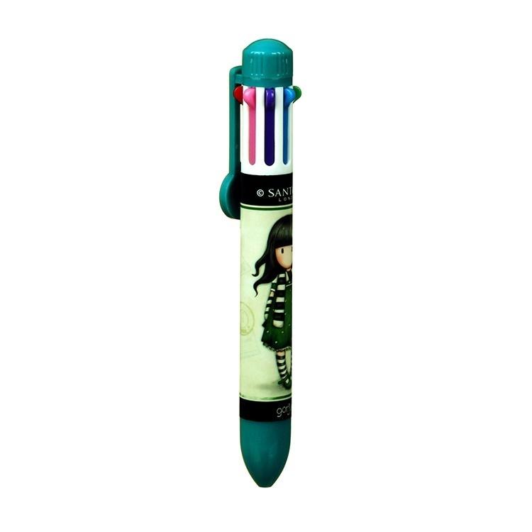 Różnokolorowy długopis - Gorjuss - The Scarf. Zawiera 8 kolorów:Jasno i ciemnoniebieski, czarny, czerwony, różowy, fioletowy, zielony i pomarańczowy. Bardzo wygodny w trzymaniu. Pięknie wykonany, ozdobiony grafikami Dziewczynki Gorjuss. Kolorystyka: odcienie błękitu i różu.