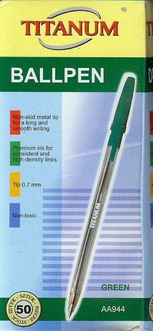 zatyczka z oznaczeniem koloru wkładu wkład w kolorach: czarnym, niebieskim, czerwonym, zielonym, błękitnym, fioletowym, jasnozielonym, różowym, pomarańczowym, żółtym grubość linii pisania 0,7 mm