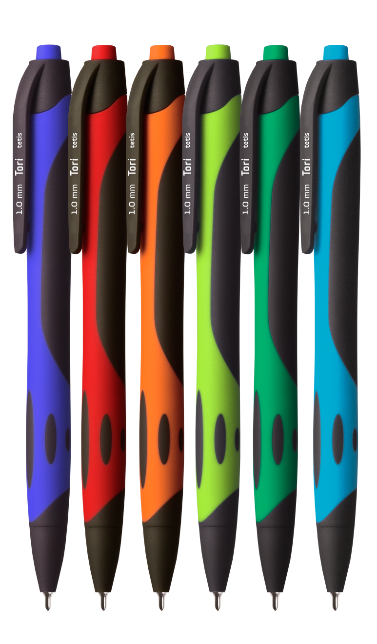 Długopis automatyczny TORI wyposażony w końcówkę igłową i miękko piszący wkład olejowy. Grubość linii pisania: 1,0 mm. Mix kolorów obudowy. Wkład niebieski. Opakowanie: display 36 sztuk. x