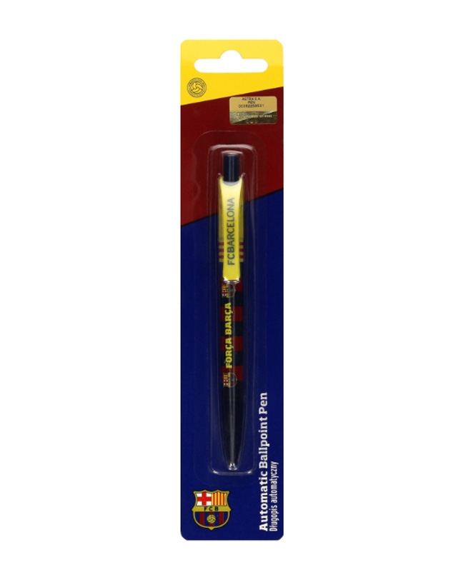 Długopis automatyczny FC Barcelona z wymiennym wkładem. Grubość końcówki 0,7mm.