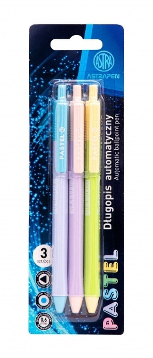 Długopis automatyczny Pastel Pen Astra 0,6mm blister 3 sztuki