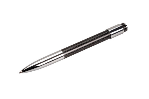 długopis biznesowy w pudełku kaszerowanym, materiał: karbon inaczej włókno węglowe (lekki i wytrzymały), posiada kręcący się element antystresowy, wymiary: 180x90x40 (pudełko), rozmiar długopisu: 15 cm
