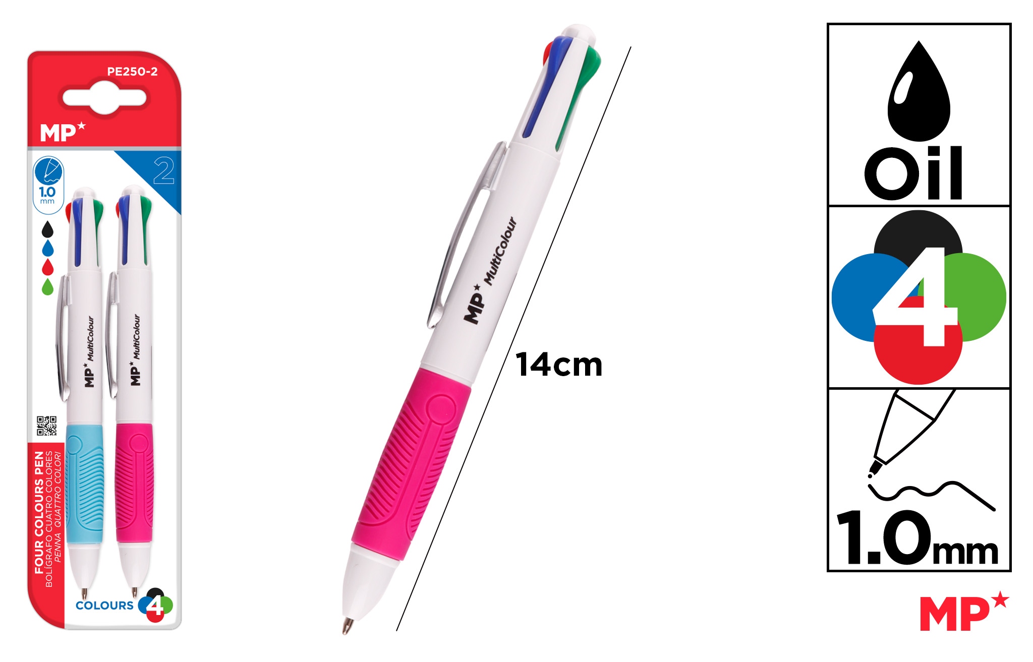 Długopis olejowy 1.0mm 4 kolory 2szt