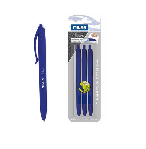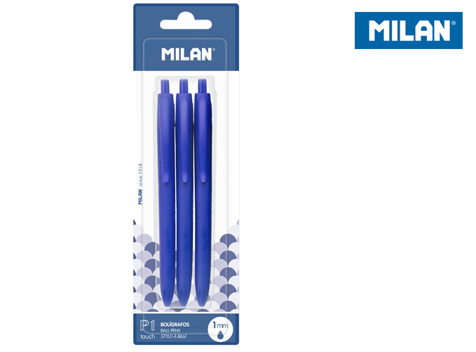 Zestaw 3 długopisów w kolorze niebieskim z matową satynową powłoką TOUCH w dotyku jak gumka. Długość linii pisania: 1200 m, grubość linii: 1 mm