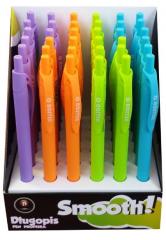 Długopis z końcówką pisania 0,7 mm, cztery fluorescencyjne kolory obudowy. Wymienny wkład w kolorze niebieskim. Wygodny gumowy grip.