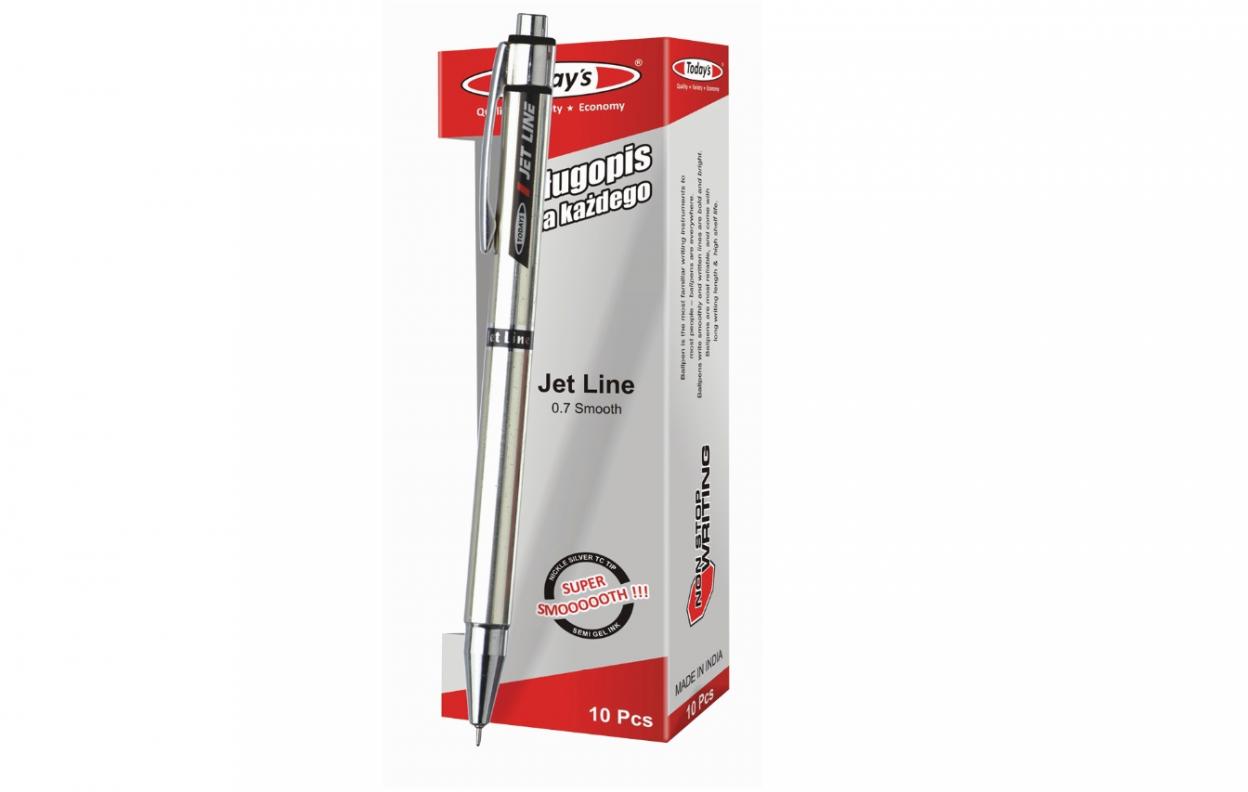 Opis produktuZasady bezpieczeństwaDługopisy Today's Jet Line Black. Opakowanie zawiera 10 szt. Czarny wkład olejowy. Igłowa końcówka. Grubość linii pisania: 0.7 mm. Elegancka metaliczna obudowa. x