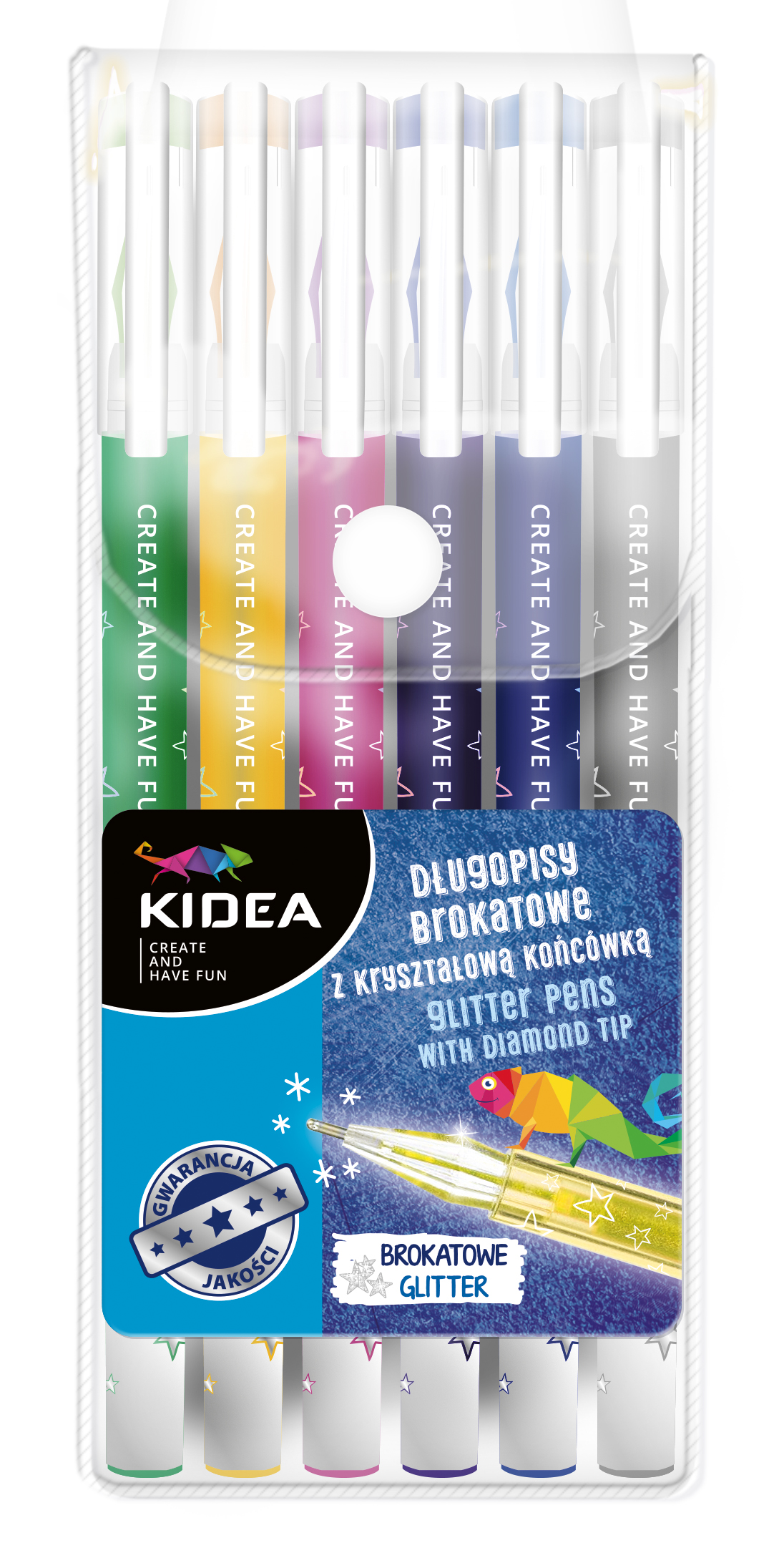 Brokatowe długopisy żelowe, wyróżniają się swoim finezyjnym wyglądem. Końcówka w kształcie kryształu i diamencik w obudowie zachwycą każdą dziewczynkę. Długopisy idealnie sprawdzą się do wyróżnienia tekstów oraz przygotowania ważnych notatek.