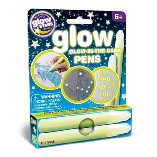 Pisaki z farbą fluoryzującą w ciemności - Glow in The Dark. Twórz własne świecące w ciemności elementy na rysunkach, naklejkach, plakatach i książkach. Delikatnie ściśnij pióro podczas pisania. Naładuj je w świetle, a następnie obserwuj, jak świecą przed snem. Po zastosowaniu zapewniają tłoczone, kolorowe wykończenie. Twoje kreacje należy pozostawić do wyschnięcia na noc. Zalecamy ochronę powierzchni i noszenie starej odzieży podczas korzystania z markerów, ponieważ kolor nie zmywa się z odzieży. Wszelkie wycieki należy natychmiast zetrzeć wilgotną szmatką. W zestawie 2 markery.