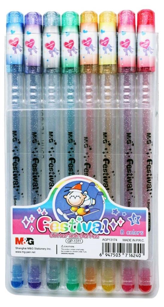 Długopisy żelowe brokatowe M&G 8 kolorów