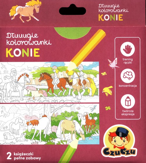 Zestaw zawiera 2 długie książeczki harmonijki pełne kreatywnych zabaw. To prawdziwa gratka dla wszystkich, którzy lubią konie i życie w siodle! Z jednej strony każdej książeczki znajduje się długa kolorowanka, a z drugiej twórcze zadania, dostosowanych do wieku przedszkolaków. Kolorowanki i łamigłówki inspirują do wesołych i rozwijających zabaw. Wyjątkowa cecha: kreatywny zestaw pozwala na zabawy na wiele sposobów i rośnie razem z dziećmi. Bawcie się i doskonalcie różne umiejętności. x