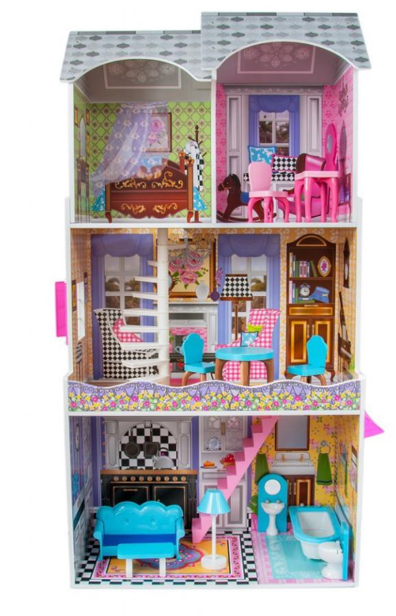 Drewniany ogromny domek dla lalek 3 piętrowy z windą.