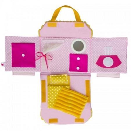 Domek posiada łóżko, stół z krzesłem, komodę, lustro oraz firankę. Pełne wyposażenie pozwala na wprowadzenie lalki w codzienne rytuały, co rozwija zdolności organizacji czasu i uczy dzieci odpowiedzialności.