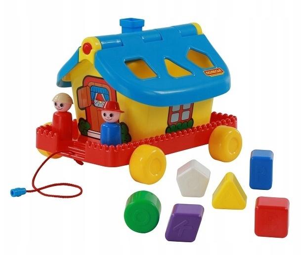 Sorter kształtów w kształcie domku na platformie do ciągnięcia.