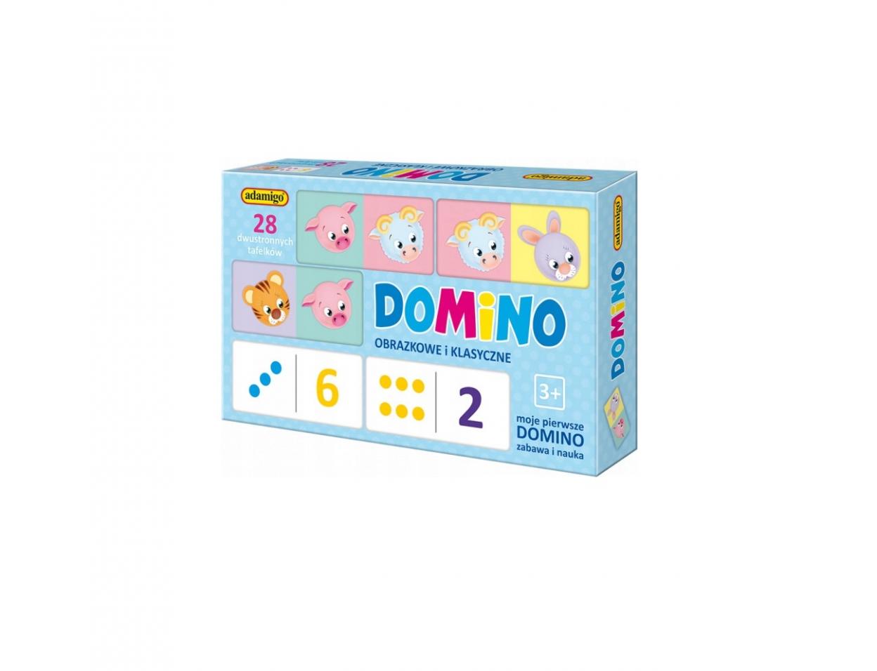 Domino obrazkowe to ciekawa i pełna emocji zabawa dla dzieci w wieku od 3 lat. Domino to gra logiczna, która zachęca Twojego malucha do myślenia, porównywania i kojarzenia. Proste zasady gry zapewniają dzieciom dobrą zabawę.Zanim gracze przystąpią do gry muszą zdecydować, które domino będą układać: z kolorowym, czy z białym tłem.Gra składa się z 28 elementów - kamieni i polega na dokładaniu ich jeden do drugiego tak, aby stykały się z takimi samymi obrazkami. Kamienie dokłada się tylko do obu końców układanki! Przed grą uczestnicy losują po 4 kamienie leżące obrazkami do spodu. Pozostałe kamienie składają w stosik, tak, aby obrazki, które będą układane w dominie, były w stosie odwrócone. Pierwszy gracz wykłada dowolny kamień. Następny dokłada pasujący element. Jeśli nie posiada odpowiedniego obrazka, bierze następny kamień ze stosiku. Jeżeli miał szczęście i kamień pasuje, dokłada go, gdy nie, zatrzymuje. Koniec gry następuje, gdy kamienie na stosiku skończą się, zaś jeden z graczy wyłoży swoje.