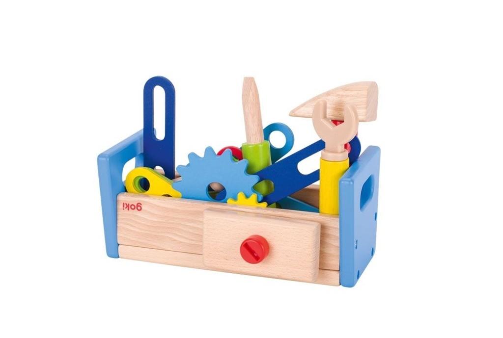 Małe dzieci uwielbiają majsterkować – przykręcać, montować i wbijać. Drewniana skrzynka narzędziowa od Goki umożliwi majsterkowanie i wesprze u dziecka rozwój motoryki małej. A podczas rozmowy z rodzicem na temat narzędzi i ich przeznaczenia rozwinie zasób słów malucha. Zestaw zawiera 40 elementów. Materiał: drewno i plastik. Goki to producent drewnianych zabawek dla dzieci, które wyróżnia styl, żywe kolory, wysoka jakość i innowacyjność. Produkty Goki wspierają rozwój sensoryczny i motoryczny dziecka, skłaniają do logicznego myślenia, a rodzicom pomagają tworzyć zrównoważony styl zabawy bez hałasu i plastiku.
