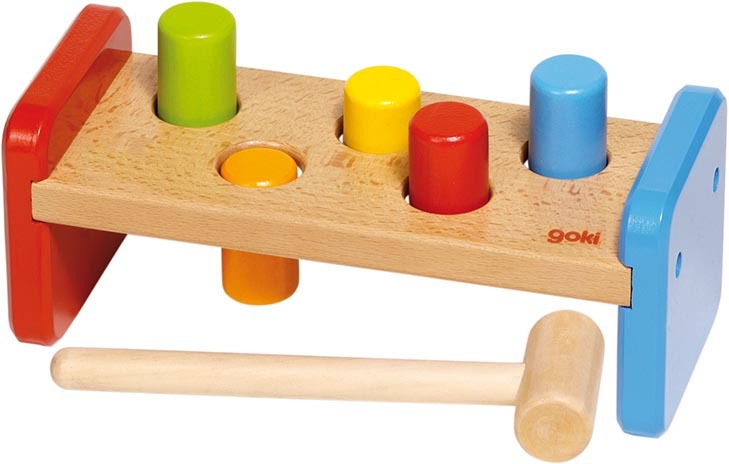 Drewniana ławeczka do wbijania kołków z młotkiem