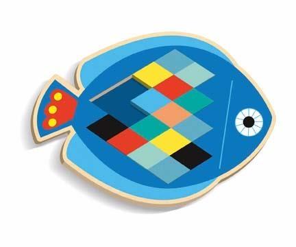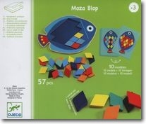 Mosa blop jest grą edukacyjną, która pomaga dziecku rozwijać swoje zdolności obserwacyjne i manualne. Zestaw zawiera: -5 kart -1 drewnianą rybkę szablon -różne kolorowe drewniane diamentowe kształtki. Wiek 3 +