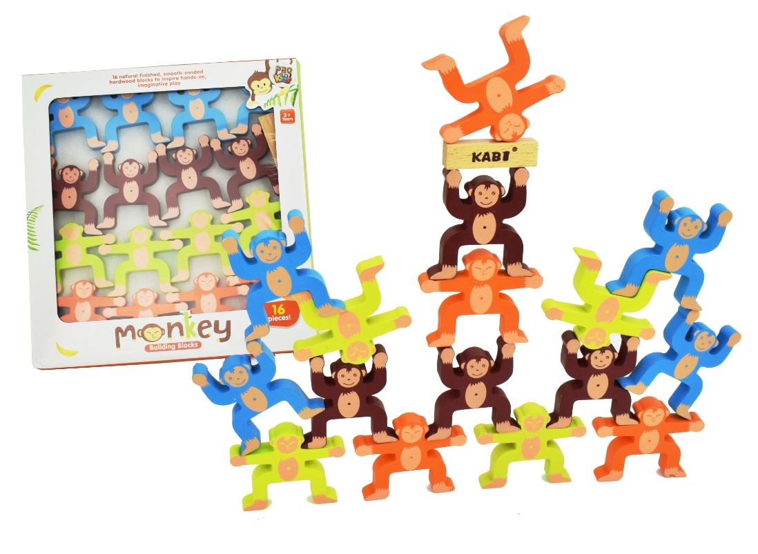 Gra i układanka wesołe drewniane małpki. Zbuduj różne konstrukcje układając małpki jedna na drugiej. Uważaj i układaj je w z odpowiednim balansem, aby konstrukcja się nie przewróciła. Zabawka rozwija umiejętności dziecka. Uczy koordynacji, zręczności oraz logicznego myślenia. Małpki wykonane z naturalnego drewna pomalowane w różnych kolorach. Małpki mają różne kształty co uatrakcyjnia rozrywkę i wprowadza dodatkowe utrudnienie w celu ułożenie piramidy z wesołych małpek. Małpki można układać samodzielnie lub ze znajomymi na zmianę. Zagrajcie w grę aby ułożyć jak najwyższą konstrukcję. Układanie małpek należy planować aby konstrukcja się nie przewróciła.