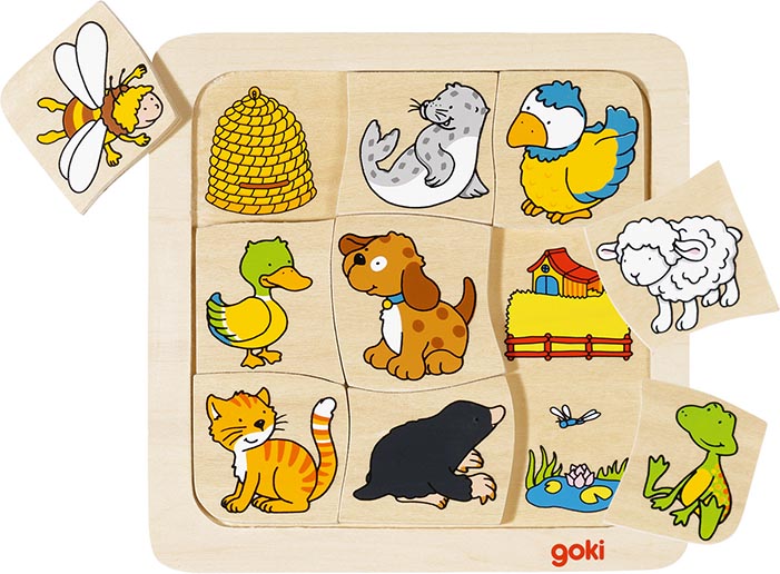 Opis produktuZasady bezpieczeństwaDrewniane 9 elementowe puzzle dla najmłodszych. Zadaniem dziecka jest dopasowanie zwierzątka do środowiska w którym żyje. x