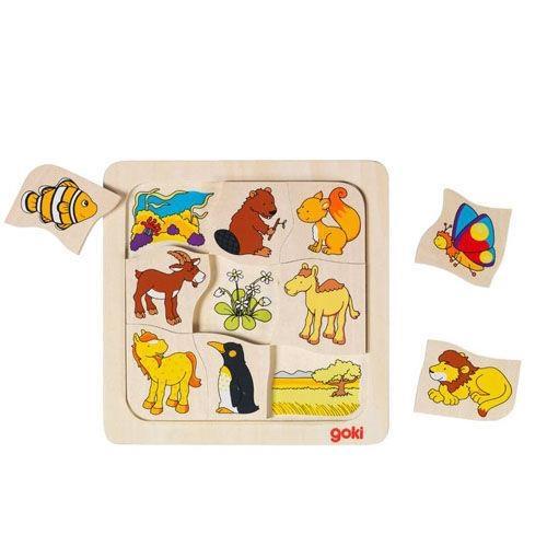 Drewniane puzzle Gdzie mieszkają zwierzątka? GOKI-56725