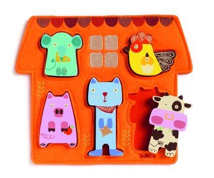 Puzzle uczą rozpoznawania zwierząt, kolorów, kształtów i logicznego myślenia. Zadaniem dziecka jest ułożenie w odpowiednim miejscu 5 zwierzątek. Układanka ćwiczy spostrzegawczość i zdolności manualne.