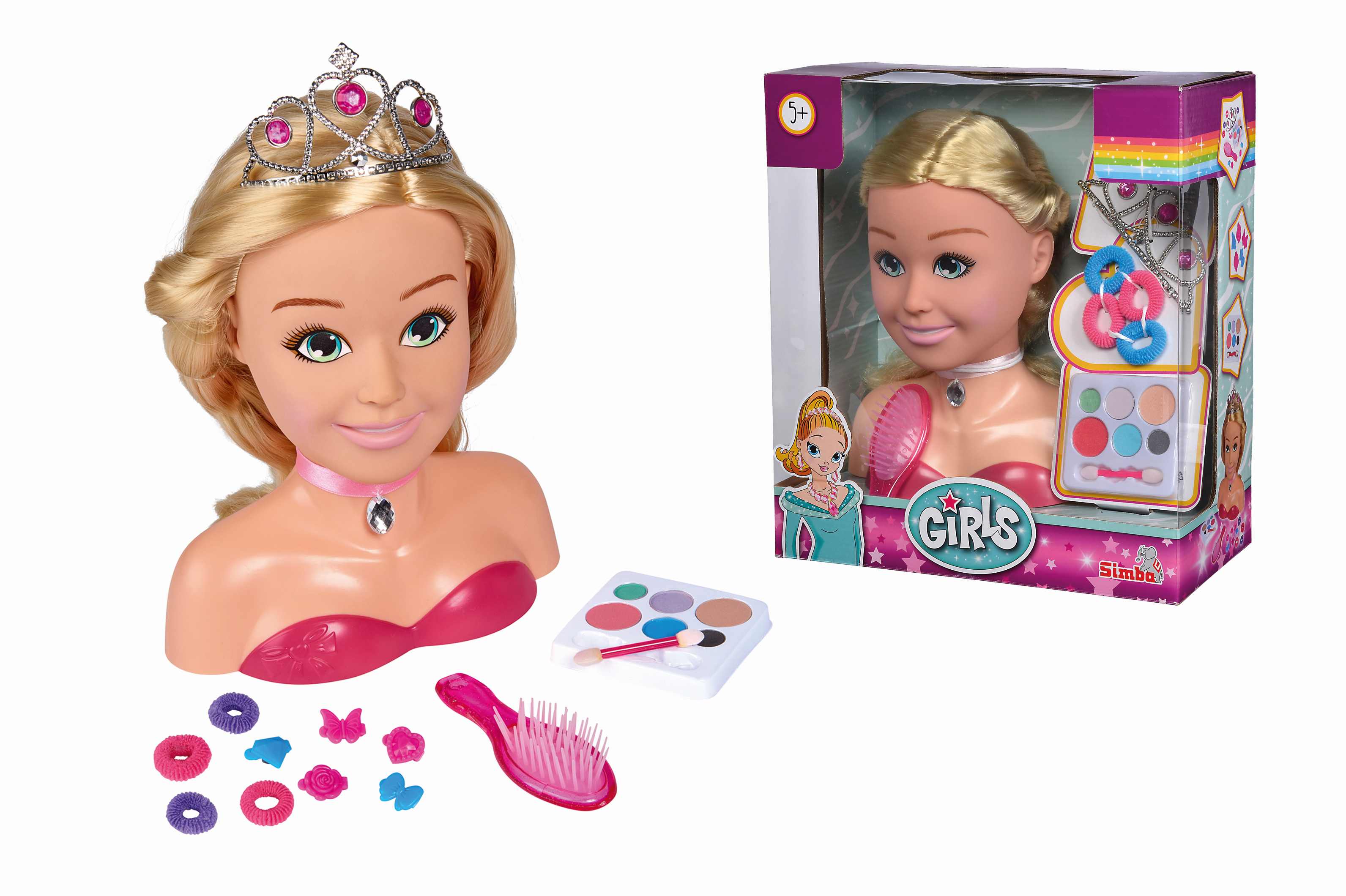 Opis produktuZasady bezpieczeństwaGłowa z długimi blond włosami i licznymi akcesoriami do czesania i upinania włosów oraz wykonywania makijażu, dołączona tiara, 15 elementów, wysokość: 26 cm x