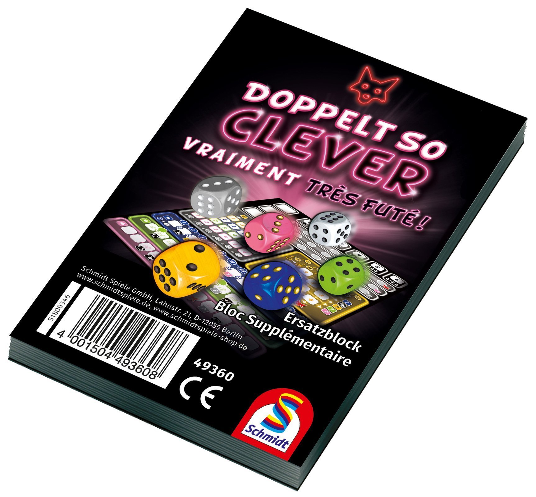 Bloczek do gry kościanej Duże sumy! Każdy bloczek składa się z dwustronnych kartek. Jedna strona przeznaczona jest do wykreślania wyników wskazanych przez wyrzucone kości, druga strona służy do podliczenia ostatecznych rezultatów. Prezentowany bloczek jest taki sam, jak ten, który znajduje się w opakowaniu z grą.