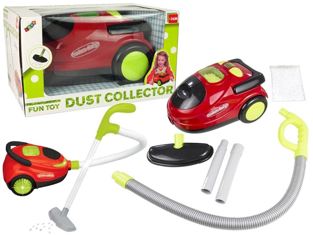 Zabawkowy odkurzacz zaprojektowany jest z myślą o najmłodszych pomocnikach domowych. Jego konstrukcja jest zaokrąglona, jednak do złudzenia przypomina pełnowymiarowy, prawdziwy odkurzacz. Kolorystka, w jakiej wykonano odkurzacz, jest bardzo neutralna spodoba się zarówno dziewczynce, jak i chłopcu. Czerwono-czarny sprzęt posiada detale w jasnozielonym kolorze, a także podświetlane elementy. Odkurzacz wyposażony jest we włącznik ON/OFF oraz lampkę sygnalizującą zasilanie, a także giętką rurę, przyssawkę oraz poręczny uchwyt, ułatwiający dziecku samodzielnego przenoszenie zabawki.