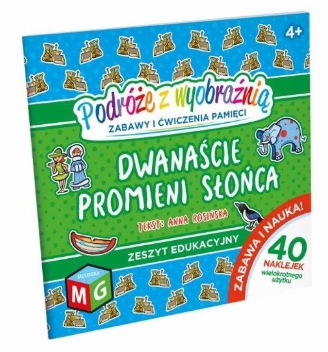 Podróże z wyobrażnią- zabawy i ćwiczenia pamięci- dwanaście promieni słońca. Zawiera 40 naklejek wielokrotnego użytku.