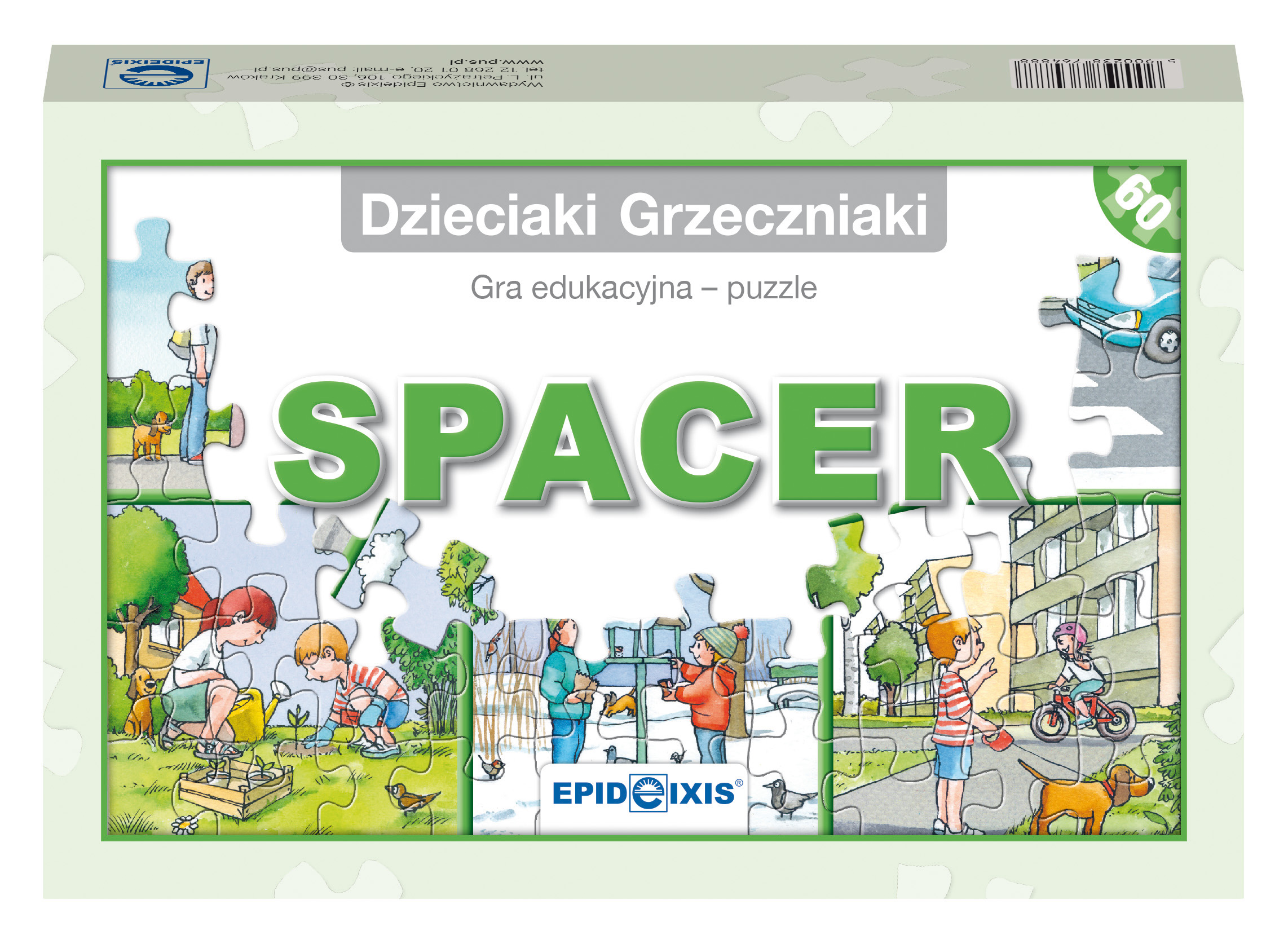 Dzieciaki Grzeczniaki – Spacer to prosta, a jednocześnie atrakcyjna gra edukacyjna należąca do serii „Dzieciaki Grzeczniaki”, przeznaczona dla dzieci w wieku przedszkolnym i wczesnoszkolnym. Gry z tej serii mogą być wykorzystywane przez rodziców do zabaw z dziećmi w domu, jak również mogą być używane przez pedagogów i psychologów jako narzędzie edukacyjno-terapeutyczne w przedszkolu, szkole, świetlicy, placówce wychowawczej.
