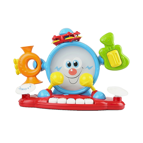 Dziecięca Kapela to zestaw instrumentów dla małego muzyka, który uczy się poczucia rytmu, zasady ich działania, oraz kształci swój słuch. Cechy zabawki: mrugająca perkusja z mini talerzami 5 klawiszy pianina odczepiane instrumenty: trąbka tamburyn gitara 2 tryby zabawy: tworzenie dowolnych melodii odtwarzanie melodii w miarę dotykania klawiszy/przycisków młotka bębna/talerzy przycisk demo odtworzy kompozycję gra śmieszne melodie i dźwięki.