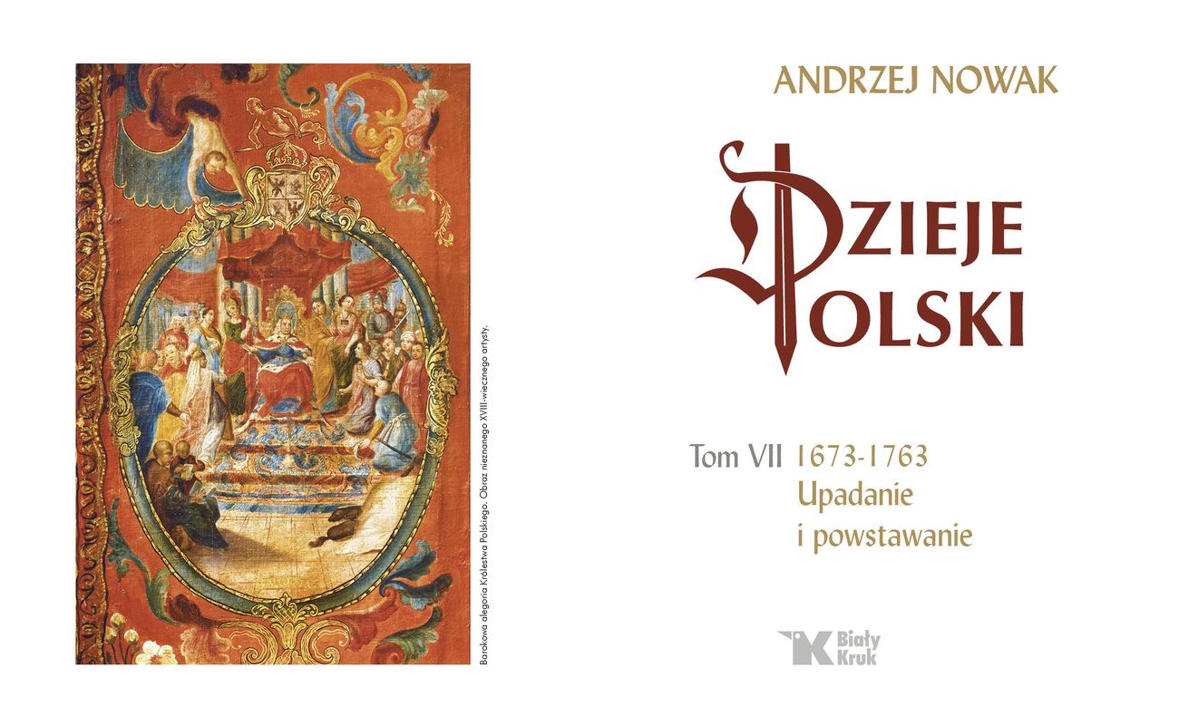 Co za czasy w Rzeczypospolitej! Od sławionego w całej Europie zwycięstwa pod Wiedniem w 1683 r. po widmo upadku państwa - zaledwie pół wieku później Siódmy tom "Dziejów Polski" prof. Andrzeja Nowaka czyta się nie jak jeden, ale jak kilkanaście scenariuszy hollywoodzkich superprodukcji historycznych. W tym okresie Rzeczpospolita niestety doznaje porażek jak nigdy dotąd. Kraj przeżywa klęski w wojnach, w których oficjalnie sam nie uczestniczy. Po śmierci Jana III Sobieskiego przez nasze ziemie przewalają się wojska szwedzkie (znów), saskie, rosyjskie, potem pruskie. Po ich przemarszach pozostają zgliszcza i głód. Stanisław Leszczyński jest dwukrotnie obierany królem, ale musi uciekać z Ojczyzny. Przedstawiciel obcej nam niemieckiej dynastii Wettynów, August III, zdobywa polską koronę, ale dzięki carskim sołdatom. x
