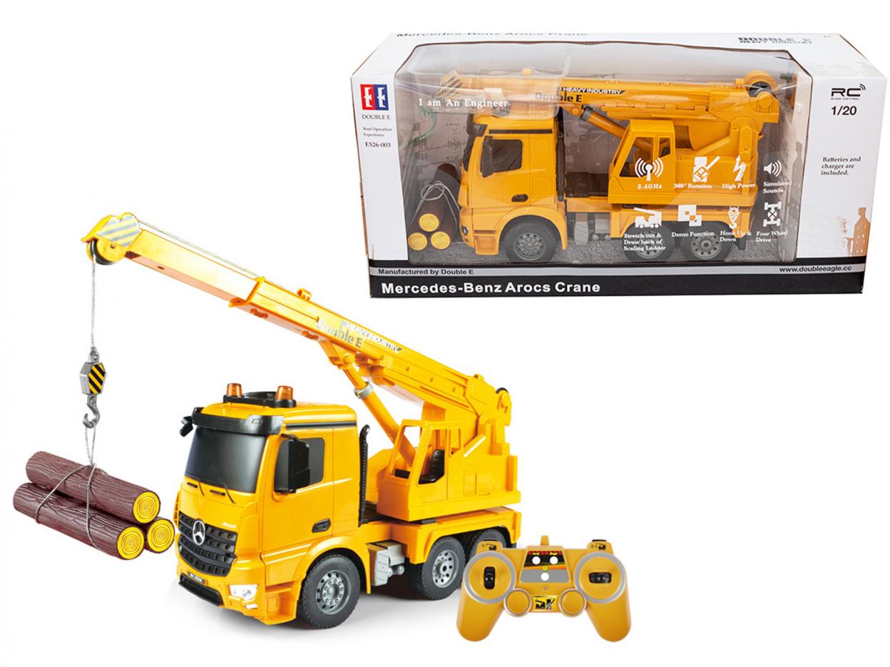 Pojazd dźwig marki Mercedes-Benz, zdalnie sterowany, obrót dźwigu 360 stopni, wysuwane ramię, światła i dźwięk.