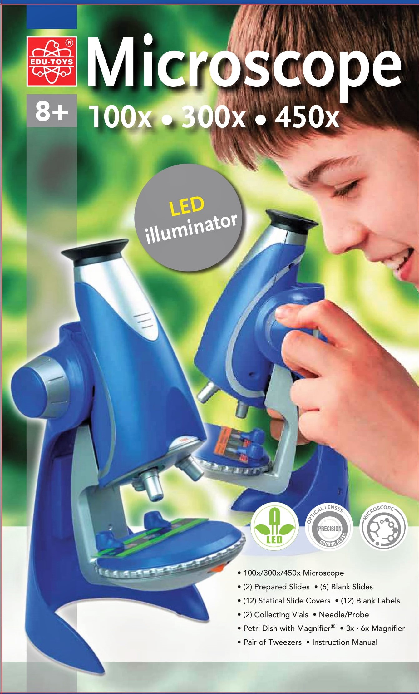 Mikroskop został wynaleziony wiele lat temu. Od tamtego czasu rozszerzył świat badań, obejmując dziedziny biologii czy psychologii. Mikroskop bada żywe organizmy i materiały statyczne, które nas otaczają Twój mikroskop będzie źródłem dobrej zabawy i długotrwałego hobby. Mój pierwszy Mikroskop zapewni Ci też edukację z wielu dziedzin nauki. Odkryjesz jak jest zbudowany i jak działa. Mikroskop posiada powiększenie 100x-300x-400x. W zestawie mamy również bardzo dużo różnych dodatków takich jak gotowe preparaty do oglądania czy puste szkiełka do przygotowania własnych preparatów np. z soli, wełny czy pyłku kwiatowego. Wiek dziecka 8 + ZESTAW ZAWIERA: Mikroskop oraz (2) Przygotowane szkiełka (6) Puste szkiełka (12) Blaszki mocujące próbki (12) Pustych etykiet (2) Zbiorcze fiolki (1) Igła/ próbnik (1) Szalka Petriego ze szkłem powiększającym. (1) 3x 6x szkło powiększające (1) Pęseta (1) Instrukcję obsługi w języku polskim. x