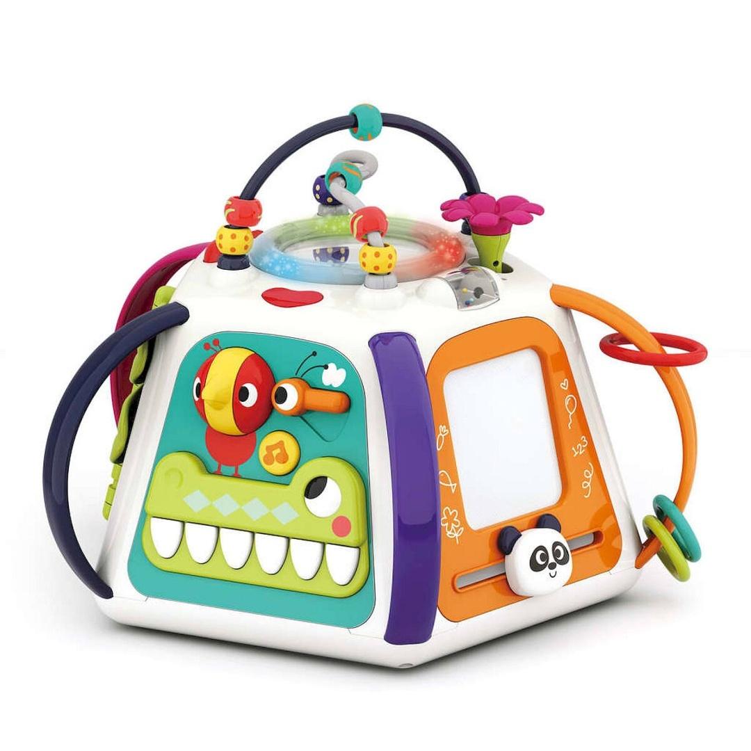 Najniższa cena z ostatnich 30 dni: 110,60 zł Opis produktuZasady bezpieczeństwaEDUKACYJNA PIRAMIDA HOLA Kostka aktywizująca edukacyjna interaktywna Piramidka Centrum zabaw marki HOLA to wielofunkcyjna zabawka zaprojektowana z myślą o wszechstronnym rozwoju maluchów. Zabawka w kształcie piramidy oferuje dzieciom różnorodne aktywności, które stymulują ich zmysły oraz rozwijają umiejętności poznawcze i motoryczne. Każda strona piramidki zawiera inne interaktywne elementy, takie jak przyciski, obrotowe części, dźwignie oraz lusterka, które zachęcają do odkrywania i eksperymentowania. Cechy: Wiek dziecka: 18 miesięcy + Materiał: Wysokiej jakości tworzywo sztuczne Funkcje: Interaktywne przyciski, obrotowe elementy, lusterko, dźwignie, grające melodie i światełka Zawartość zestawu: Kostka aktywizująca w kształcie piramidy Wymiary: Dopasowane do rączek małych dzieci Bezpieczeństwo: Produkt spełnia europejskie normy bezpieczeństwa CE Co dziecko znajdzie podczas zabawy koską : -z młoteczkiem, -sorter, -mikrofon, -dźwięki, -melodie, -światła, -koła zębate, -kierownica, -kluczyk, -telefon, -bębenek, -labirynty, -liczydło ŚCIANA 1 Na tej ściance znajduje się gra zręcznościowa, która polega na uderzaniu młoteczkiem w guziki tak, aby znajdująca się wewnątrz kulka przeskoczyła na drugą stronę. W czasie uderzania młoteczkiem, dziecko usłyszy wesołe dźwięki. Dla malucha to doskonała zabawa, która uczy go również cierpliwości, zręczności i sprytu. ŚCIANA 2 Na górnej ścianie znajdują się dwa labirynty-kolejki z kolorowymi koralikami oraz duży przycisk, który po naciśnięciu zapala się i wydaje kilka dźwięków. Znajduje się tu również włącznik on/off i miejsce na młoteczek używany do gry zręcznościowej. Koraliki mogą spełniać wiele funkcji, w zależności od wieku dziecka - najmłodszym sporo radości sprawi dotykanie ich i przerzucanie po pałąku, z kolei starsze dzieci za pomocą koralików można nauczyć odróżniania kolorów, a następnie liczenia. ŚCIANA 3 Na tej ściance znajduje się mikrofon, przez który maluchy mogą śpiewać i mówić. Mikrofon działa po podniesieniu dźwigni, która zapala światełko i uruchamia lusterko, w którym zobaczyć można wesołe zwierzątko z mikrofonem. ŚCIANA 4 Na tej ściance znajdują się dwie zębatki, które podczas obrotu wydają wesołe dźwięki. Większa zębatka wypełniona jest wodą, w której pływają morskie stworki. ŚCIANA 5 Na tej ściance znajduje się symulator kierownicy, którą można kręcić w lewo i prawo. Znajduje się tu również stacyjka, po przekręceniu której usłyszymy dźwięk zapalanego silnika. ŚCIANA 5 Na piramidzie znajduje się mini telefon oraz duży guzik, który zmienia obrazki na ekranie. Po naciśnięciu go, na ekranie pokażą się trzy obrazki i adekwatne do nich dźwięki. Maluch usłyszy pianie koguta, chrapanie oraz inne melodie. Zalety: Rozwija zdolności manualne i koordynację ręka-oko Wspiera rozwój zmysłów (wzroku, słuchu, dotyku) Zachęca do logicznego myślenia i kreatywności Zabawka jest trwała, bezpieczna i wykonana z nietoksycznych materiałów Żywe, kontrastowe barwy, które przyciągają uwagę dziecka Kostka aktywizująca jest zaprojektowana tak, aby rozwijać różne aspekty rozwoju dziecka poprzez zabawę. Melodie i dźwięki dodają atrakcyjności, a różnorodność elementów interaktywnych sprawia, że zabawa nigdy się nie nudzi. Zabawka "Kostka aktywizująca edukacyjna interaktywna Piramidka Centrum zabaw marki HOLA" to doskonały wybór dla rodziców, którzy chcą zapewnić swoim dzieciom nie tylko rozrywkę, ale także wartościowe doświadczenia edukacyjne. x