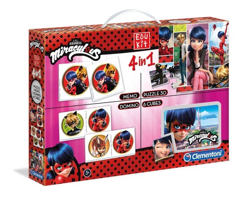 Rozbudowany zestaw zabaw 4 w 1 - puzzle, gra memo, domino i sześć klocków z Biedronką i Czarnym Kotem!