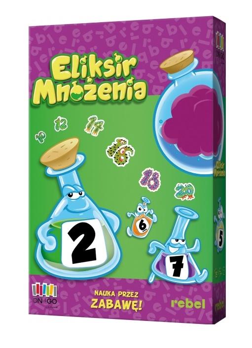 W Eliksirze mnożenia zwycięży ten z graczy, który jako pierwszy schwyta 5 potworów. Aby to zrobić, musi zebrać cyfry, które pomnożone przez siebie dadzą liczbę równą numerowi stwora, znajdującego się na polu drugiego uczestnika zabawy. Wydaje się proste? Nie tak bardzo, jeśli weźmiemy pod uwagę, że z każdym ruchem będziemy sobie nawzajem przeszkadzali! Na czym to polega? Każdy z graczy ma na ręce komplet dwustronnych kart: na górze każdej z nich znajduje się potwór oznaczony liczbą, a na dole - eliksir z numerem. Zadaniem graczy jest wykładać karty w taki sposób, aby w ich części stołu znalazła się kombinacja cyfr-eliksirów, których iloczyn będzie równy numerowi jednego z potworów przeciwnika. Oznacza to, że każda wykładana przez nas karta ma dwie funkcje - dla nas narzędziem jest strona z eliksirem, natomiast dla przeciwnika ważne są potwory, które stanowią jego cel. Zwycięża gracz, który jako pierwszy schwyta 5 potworów. x