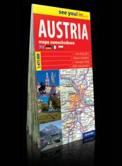 Austria - mapa samochodowa 1:475 000. Stan dróg 2010, odcinki w budowie, szczegółowa kategoryzacja i numeracja dróg, odległości drogowe w kilometrach, ośrodki narciarskie wraz z największymi wyciągami, opisy głównych pasm górskich oraz najważniejszych szczytów i przełęczy, plastyczna rzeźba terenu, lasy, parki narodowe, skorowidz miejscowości.