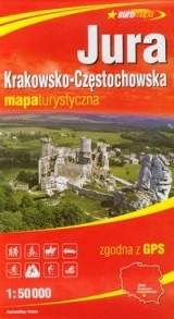 Mapa turystyczna Jury Krakowsko-Częstochowskiej obejmująca obszar od Częstochowy na północnym zachodzie po Kraków na południowym wschodzie, zapakowana w ochronne etui. Mapa opracowana we współpracy z doświadczonymi krajoznawcami z regionu, dogodna zarówno dla pieszego, jak i rowerzysty, skala 1:50 000 (1 cm - 500 m), bogata treść turystyczna, m.in.: szlaki piesze i rowerowe, ścieżki dydaktyczne i spacerowe, trasy konne, muzea, zabytki i inne interesujące obiekty, parki narodowe i krajobrazowe, rezerwaty przyrody, atrakcje przyrodnicze. Poziomice pokazujące ukształtowanie terenu, mapa zgodna z GPS - współrzędne geograficzne w układzie WGS-84.
