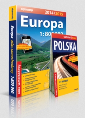 Europa atlas samochodowy 1:800 000 + laminowana mapa kieszonkowa Polski 1:1 400 000